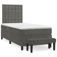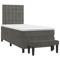 Use this box spring bed to enjoy a restful night's sleep! It offers you maximum relaxation and pleasant sleep. Soft velvet: Velvet is a soft, luxurious fabric that is recognised by its dense pile of evenly cut fibres that have a smooth nap. Velvet fabric features a distinctive soft feel, making it comfortable to touch.Practical headboard: The bed headboard is adjustable in height as per your preference. The bed header provides you with excellent back support while you're sitting up in bed to read or watch TV.Pocket spring mattress: The built-in individual pocket spring is known for its very high quality while ensuring a high level of durability and adaptability. It can effectively absorb the noise and shock caused by throwing and turning.Medium-hard support: The bed mattress perfectly provides added stability and just the right level of firmness without sacrificing comfort. So, it is ideal for back or stomach sleepers.Skin-friendly mattress topper: The mattress protector features a hard-wearing as well as skin-friendly fabric cover, making it soft and comfortable.Multifunctional bench: This bench can serve as an additional seat in your home. Also, it can be used as an end of bed bench. Note:For hygiene reasons, the mattress cannot be returned if the packaging is removed or opened.Each product comes with an assembly manual in the box for easy assembly.