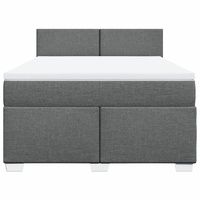 Box Spring Bed with Mattress Dark Grey Double Fabric