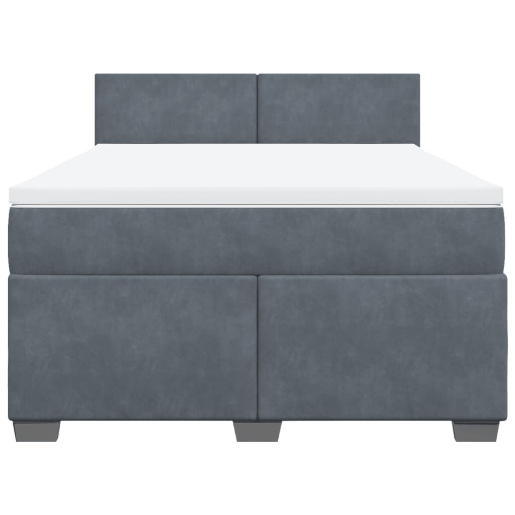 Use this box spring bed to enjoy a restful night's sleep! It offers you maximum relaxation and pleasant sleep. Soft velvet: Velvet is a soft, luxurious fabric that is recognised by its dense pile of evenly cut fibres that have a smooth nap. Velvet fabric features a distinctive soft feel, making it comfortable to touch.Pocket spring mattress: This pocket sprung mattress has individual pocket springs that work independently to provide personalised support by reacting only to pressure in each area. This design prevents "roll-together" and reduces motion transfer compared to traditional open coil mattresses. Each pocket spring supports the body individually.Comfortable mattress topper: This mattress topper enhances support and comfort with its soft, breathable surface while extending the life span of your mattress. Its removable cover allows for easy washing, making maintenance a breeze.Slats for optimal support: The bed frame is complete with slats to offer essential support and breathability to your mattress. Good to know:For hygiene reasons, the mattress cannot be returned if the packaging is removed or opened.