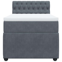 Use this box spring bed to enjoy a restful night's sleep! It offers you maximum relaxation and pleasant sleep. Soft and comfortable material: Velvet fabric features a soft and smooth surface that delivers a delightful sensation against the skin, bringing you warmth and ultimate comfort.Pocket spring mattress: This pocket sprung mattress has individual pocket springs that work independently to provide personalised support by reacting only to pressure in each area. This design prevents "roll-together" and reduces motion transfer compared to traditional open coil mattresses. Each pocket spring supports the body individually.Comfortable mattress topper: This mattress topper enhances support and comfort with its soft, breathable surface while extending the life span of your mattress. Its removable cover allows for easy washing, making maintenance a breeze.Slats for optimal support: The bed frame is complete with slats to offer essential support and breathability to your mattress. Good to know:For hygiene reasons, the mattress cannot be returned if the packaging is removed or opened.