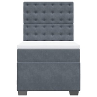 Use this box spring bed to enjoy a restful night's sleep! It offers you maximum relaxation and pleasant sleep. Soft and comfortable material: Velvet fabric features a soft and smooth surface that delivers a delightful sensation against the skin, bringing you warmth and ultimate comfort.Pocket spring mattress: This pocket sprung mattress has individual pocket springs that work independently to provide personalised support by reacting only to pressure in each area. This design prevents "roll-together" and reduces motion transfer compared to traditional open coil mattresses. Each pocket spring supports the body individually.Height-adjustable headboard: The headboard is adjustable in height to suit your preference.Comfortable mattress topper: This mattress topper enhances support and comfort with its soft, breathable surface while extending the life span of your mattress. Its removable cover allows for easy washing, making maintenance a breeze.Slats for optimal support: The bed frame is complete with slats to offer essential support and breathability to your mattress. Good to know:For hygiene reasons, the mattress cannot be returned if the packaging is removed or opened.
