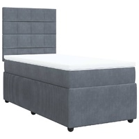 Use this box spring bed to enjoy a restful night's sleep! It offers you maximum relaxation and pleasant sleep. Soft and comfortable material: Velvet fabric features a soft and smooth surface that delivers a delightful sensation against the skin, bringing you warmth and ultimate comfort.Pocket spring mattress: This pocket sprung mattress has individual pocket springs that work independently to provide personalised support by reacting only to pressure in each area. This design prevents "roll-together" and reduces motion transfer compared to traditional open coil mattresses. Each pocket spring supports the body individually.Height-adjustable headboard: The headboard is adjustable in height to suit your preference.Comfortable mattress topper: This mattress topper enhances support and comfort with its soft, breathable surface while extending the life span of your mattress. Its removable cover allows for easy washing, making maintenance a breeze.Slats for optimal support: The bed frame is complete with slats to offer essential support and breathability to your mattress. Good to know:For hygiene reasons, the mattress cannot be returned if the packaging is removed or opened.