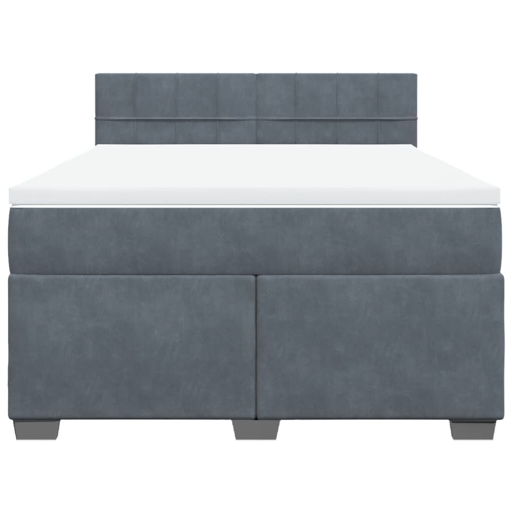 Use this box spring bed to enjoy a restful night's sleep! It offers you maximum relaxation and pleasant sleep. Soft velvet: Velvet is a soft, luxurious fabric that is recognised by its dense pile of evenly cut fibres that have a smooth nap. Velvet fabric features a distinctive soft feel, making it comfortable to touch.Pocket spring mattress: This pocket sprung mattress has individual pocket springs that work independently to provide personalised support by reacting only to pressure in each area. This design prevents "roll-together" and reduces motion transfer compared to traditional open coil mattresses. Each pocket spring supports the body individually.Comfortable mattress topper: This mattress topper enhances support and comfort with its soft, breathable surface while extending the life span of your mattress. Its removable cover allows for easy washing, making maintenance a breeze.Slats for optimal support: The bed frame is complete with slats to offer essential support and breathability to your mattress. Good to know:For hygiene reasons, the mattress cannot be returned if the packaging is removed or opened.