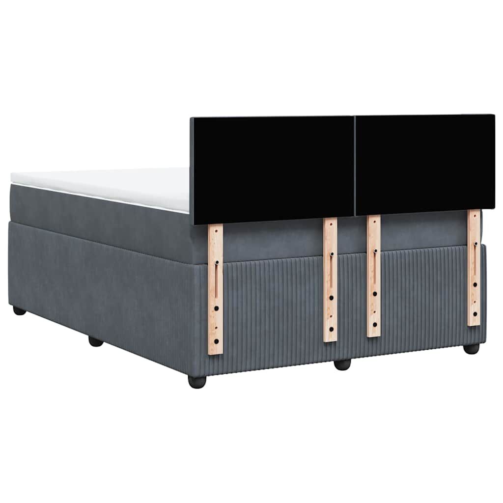 Use this box spring bed to enjoy a restful night's sleep! It offers you maximum relaxation and pleasant sleep. Soft and comfortable material: Velvet fabric features a soft and smooth surface that delivers a delightful sensation against the skin, bringing you warmth and ultimate comfort.Pocket spring mattress: This pocket sprung mattress has individual pocket springs that work independently to provide personalised support by reacting only to pressure in each area. This design prevents "roll-together" and reduces motion transfer compared to traditional open coil mattresses. Each pocket spring supports the body individually.Comfortable mattress topper: This mattress topper enhances support and comfort with its soft, breathable surface while extending the life span of your mattress. Its removable cover allows for easy washing, making maintenance a breeze.Slats for optimal support: The bed frame is complete with slats to offer essential support and breathability to your mattress. Good to know:For hygiene reasons, the mattress cannot be returned if the packaging is removed or opened.