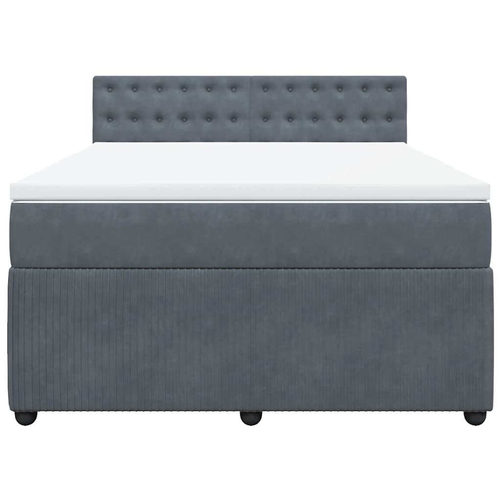 Use this box spring bed to enjoy a restful night's sleep! It offers you maximum relaxation and pleasant sleep. Soft and comfortable material: Velvet fabric features a soft and smooth surface that delivers a delightful sensation against the skin, bringing you warmth and ultimate comfort.Pocket spring mattress: This pocket sprung mattress has individual pocket springs that work independently to provide personalised support by reacting only to pressure in each area. This design prevents "roll-together" and reduces motion transfer compared to traditional open coil mattresses. Each pocket spring supports the body individually.Comfortable mattress topper: This mattress topper enhances support and comfort with its soft, breathable surface while extending the life span of your mattress. Its removable cover allows for easy washing, making maintenance a breeze.Slats for optimal support: The bed frame is complete with slats to offer essential support and breathability to your mattress. Good to know:For hygiene reasons, the mattress cannot be returned if the packaging is removed or opened.