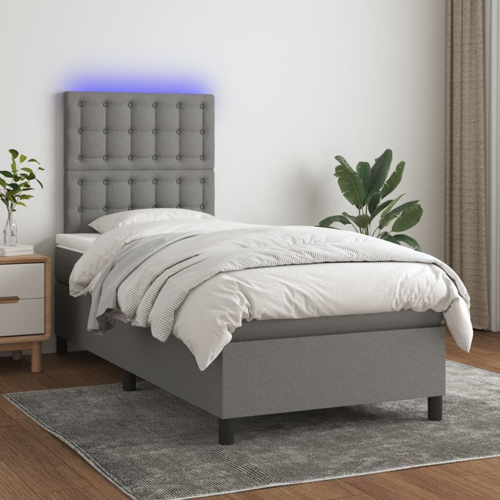 Use this box spring bed with LED to enjoy a restful sleep! It is the focal point of your bedroom. Durable fabric: The fabric features a simple and clean look, and is breathable and durable.Practical headboard: The bed headboard is adjustable in height as per your preference. The bed header provides you with excellent back support while you're sitting up in bed to read or watch TV.Colourful LED strip: Bring playfulness into darkness with colourful LED lights!Pocket spring mattress: The built-in individual pocket spring is known for its very high quality while ensuring a high level of durability and adaptability. It can effectively absorb the noise and shock caused by throwing and turning.Skin-friendly mattress topper: The mattress protector features a hard-wearing as well as skin-friendly fabric cover, making it soft and comfortable. Note:For hygiene reasons, the mattress cannot be returned if the packaging is removed or opened.Only the part with a scissors symbol can be cut and only the part with the USB will continue functioning as before.Each product comes with an assembly manual in the box for easy assembly.The product has a USB connector, but the certified 5V USB power source is not included.
