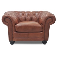 This awesome sofa is the statement-maker for your adorable living room. Designed in a Classic Chesterfield style, it fills the entire space with luxury and comfort. The 3-seater sofa features fashionable tufting with button detail and scroll arms. It has beautiful cushioning for added comfort and is upholstered in premium-grade leather in a butterscotch colour. The colour looks pretty with any interior decor style. The sofa also features strong legs made of rubberwood, high-density foam, webbing, and pocket springs. Such high-end features ensure great relaxation for the body when you stretch on it. The structural frame of the sofa is made of sustainably harvested pine and plywood, which gives it the robustness it requires for longer durability. The frame has a ten-year warranty; the webbing and springs have a ten-year warranty; the foam has a five-year warranty; and the leather has a two-year warranty.