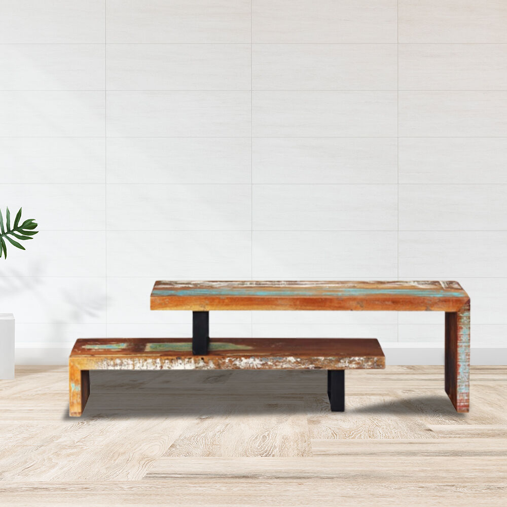 $350.61This unique wooden TV stand consists of two stackable parts that can be placed in various configurations and exudes a vintage charm that will make it a distinctive addition to your home. The TV stand can also be used as a lowboard, sideboard or side table. The TV stand is handmade of solid reclaimed wood which is stable, durable and beautiful, and has the characteristics of different woods like teak, mango wood, acacia, etc. Every step of the process is carried out with the greatest care, be it polishing or lacquering. The craftsmanship and the beautiful wood grains make every piece of furniture unique and slightly different from the next. In addition, the 2-tier TV cabinet provides ample space for storing multimedia devices, media carriers, and any other items you'd like to display or keep within reach. The top part of this TV stand can be removed or placed in various ways to make the stand wider or less wide. Important note: Colours vary from piece to piece, making each of our TV stands unique; the delivery is random.