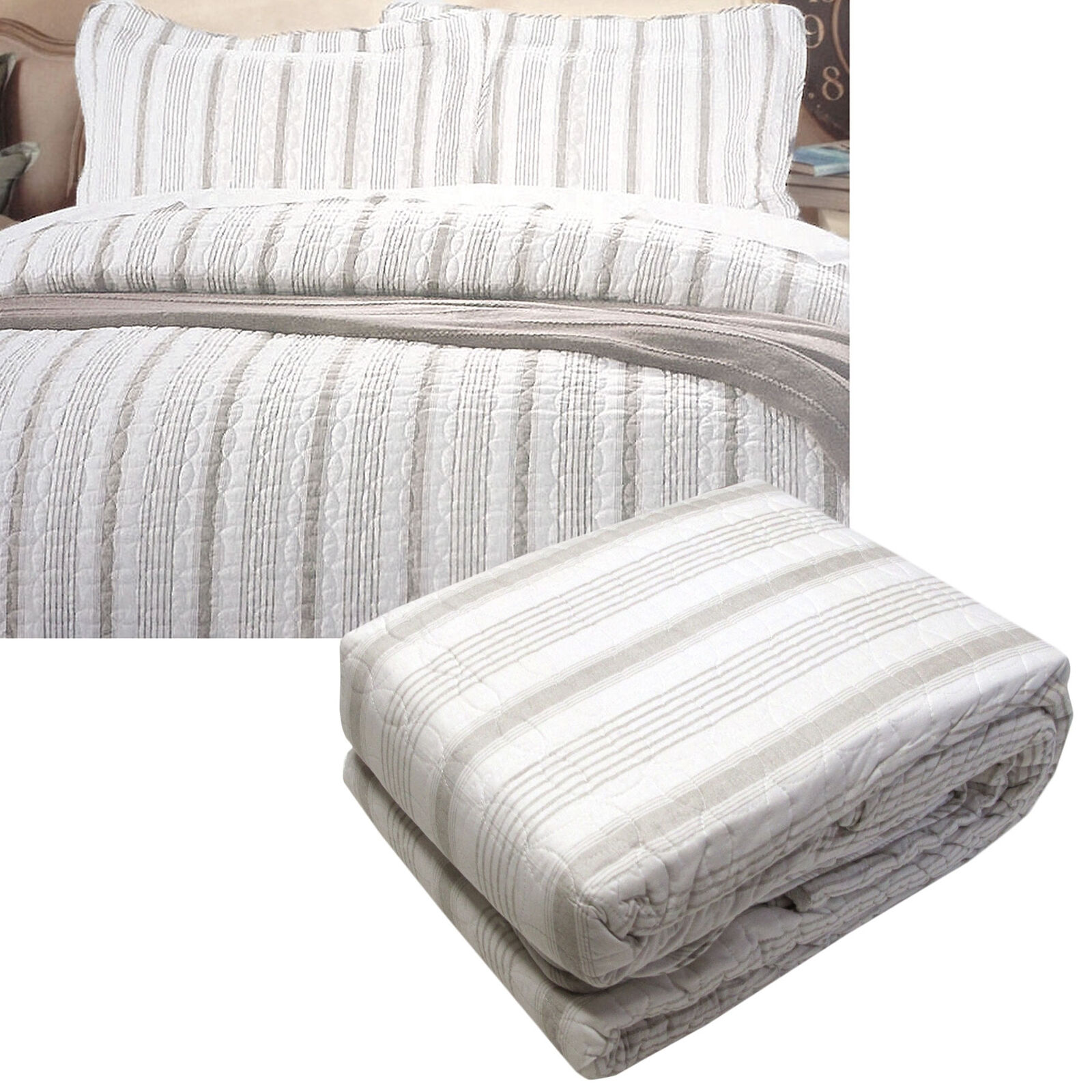 The Regatta Stone 100% Cotton Quilted Quilt Cover Set by Brighton Road is a lovely set that features a stylish print striped design and quilted circle link pattern in soft tones of Stone and White. It is made from quality 100% cotton fabric and pure cotton fill that is soft against your skin. Set is quality made with tailored edging on the pillowcases.