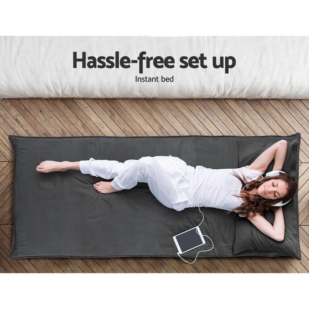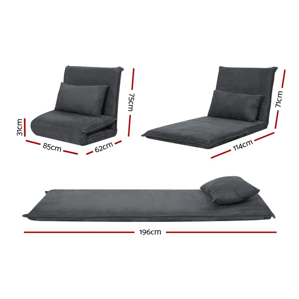 $147.57Forget about beanbags! The Artiss floor lounge sofa makes a perfect piece of furniture for chilling with friends. It allows you to create a beautiful and cosy sitting space anywhere effortlessly. So if you're tired of blow-up mattresses or uncomfortable beanbags, then you'll love our floor lounge. Our floor lounge is all about comfort, versatility, and beauty. It comes in gorgeous charcoal that will complement any space. Plus, its soft cushioned seat makes it quite comfortable to relax. Our floor lounge sofa features heavy-duty steel frame with premium microfibre fabric for durability and comfort. It boasts a convenient foldable design that enables you to fold it when not required. This makes it perfect for small spaces. Our floor lounge sofa can be adjusted into different positions for added comfort and convenience. You can use our floor lounge in different ways: lie on it, sit on it, or relax with your legs stretched. Great for movie marathons, sleepovers, gaming nights, or simply for snuggling. Purchase this versatile floor lounge today.