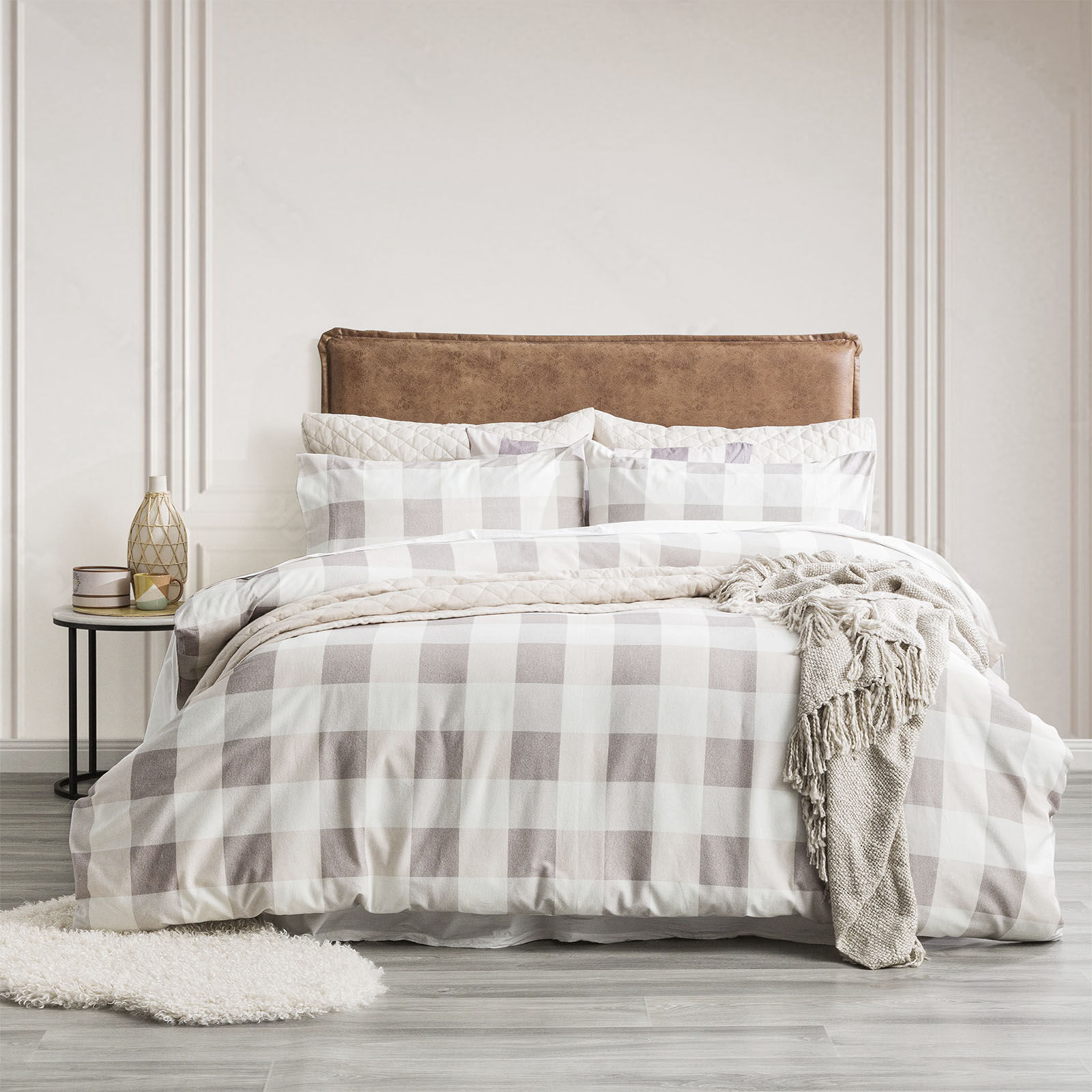 A classic check design nestles in lavish subtle colours.. The Buffalo Checks Quilt Cover set is brushed Egyptian cotton flannelette which is wonderfully soft texture and heavier weight that is perfect for holding in warmth making them a great bedding choice for cold winter nights.These flannelette can be beautifully styled to suit any bedroom.