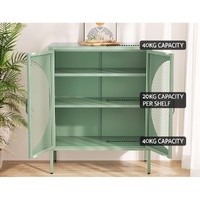$136.29For a beautiful combination of modern functionality and timeless design, the new Artiss Elsa Buffet Sideboard will give your home a cheerful, modern refresh. Whether you need extra storage space or want to revamp your space with unique furniture pieces, the Elsa is a real statement piece. The two-door cabinet is made from high-quality cold-rolled steel and features two adjustable shelves for all your essentials. The doors feature a stylish circular mesh hole so you can see exactly what's inside. Each shelf has a 20kg weight capacity, with a 40kg weight capacity for the base and top. The smooth surface is easy to clean and maintain simply wipe down with a damp cloth. Adjustable feet pads keep the cabinet in place while also protecting your floors. Looking for a contemporary glow-up? Get your hands on the Artiss Elsa Buffet Sideboard today.