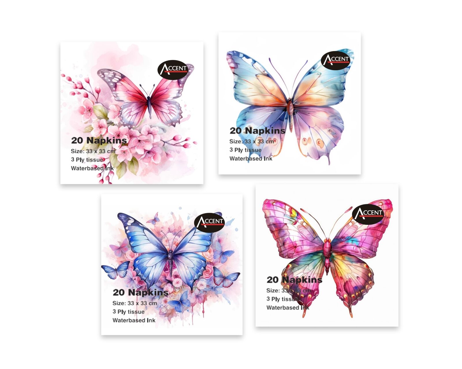 960 x Butterfly Emporium Napkins 2Ply 4 AssortHelp other Pay Later Alligator users shop smarter by writing reviews for products you have purchased.
