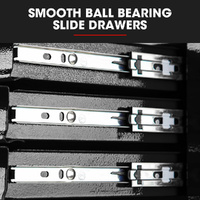 This toolbox features a lower cabinet, which is suitable for bulkier tools. Each drawer is equipped with an EVA mat and it slides effortlessly in and out on smooth ball bearing rails.