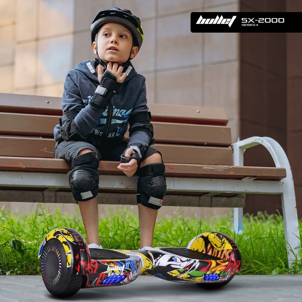 Level up your ride with the Bullet SX-2000 Hoverboard - a fusion of cutting-edge engineering and bold design. Featuring dual 250W brushless motors housed in durable aluminium mounts, it delivers smooth power and highly responsive control, perfect for cruising through parks or rolling around the block.