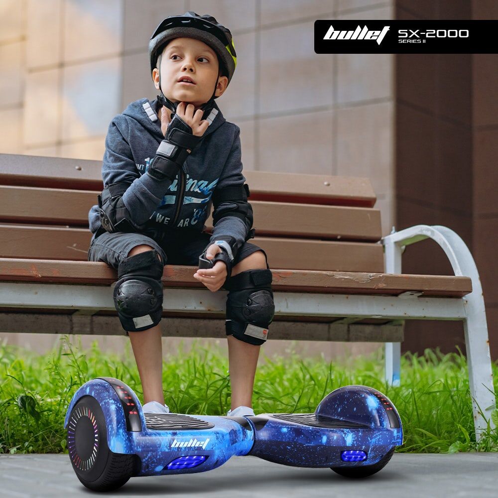 Level up your ride with the Bullet SX-2000 Hoverboard - a fusion of cutting-edge engineering and bold design. Featuring dual 250W brushless motors housed in durable aluminium mounts, it delivers smooth power and highly responsive control, perfect for cruising through parks or rolling around the block.
