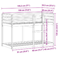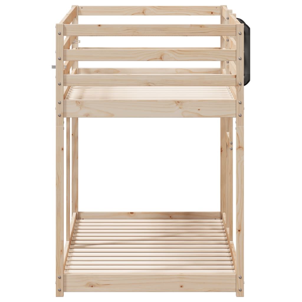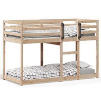 This wooden bunk bed is elegant and functional, making it a perfect addition to any room with limited space. Stable and long-lasting frame: Solid pinewood is known for its strength and durability. Its straight grains and distinctive knots contribute to its rustic charm.Slatted base for optimal support: The bed frame is equipped with a slatted base for support and breathability for your mattress.Safe design: The loft bed is designed with safety in mind. It features guardrails to keep the user from rolling out while sleeping.Suitable for limited space: The bed frame makes an excellent choice for any room with limited space, it provides two individual beds with compact design. Good to know:A mattress is not included with this bed. We do offer a various selection of mattresses. You can check our shop for a matching mattress. Warning:To prevent it from tipping over, this product must be used with the provided wall attachment device.