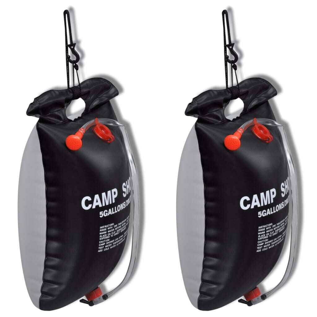 $31.95This camp shower gives your a soothing shower after a long journey when you are camping or hiking. Made from high-quality PVC material, the solar shower is weather resistant and sturdy in its structure. Equipped with a valve, it is very convenient to control water yield. You can fill the reservoir with water and hang it in a tree, a pipe or branches, etc. The handle of the bag is reinforced by the hard plastic tube, so you won't have to worry that it will drop suddenly. During a sunny day, the black reservoir allows a quick absorption of solar energy and heat up the water. With a valve and a shower head, you are now able to enjoy a comfortable outdoor bath. The camp shower can be easily folded away for easy storage and carrying. Delivery includes two camp shower bags.