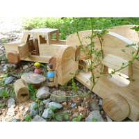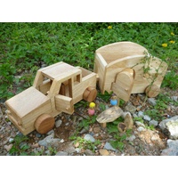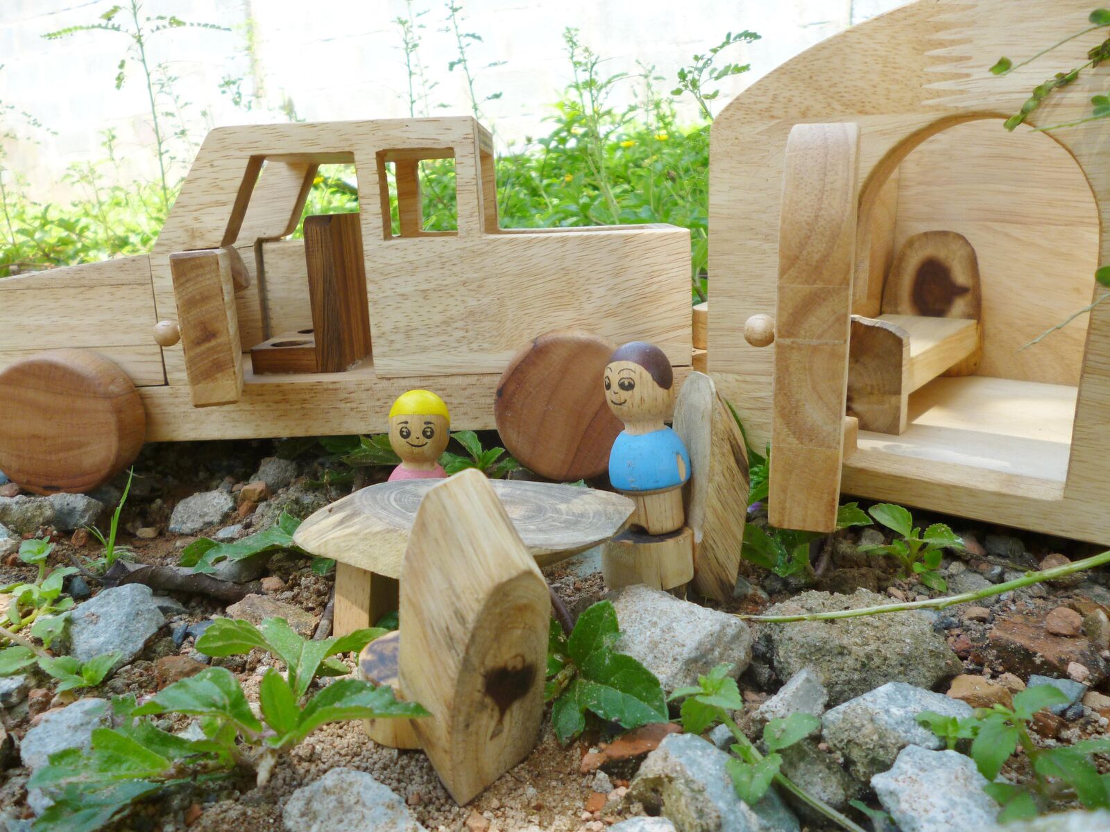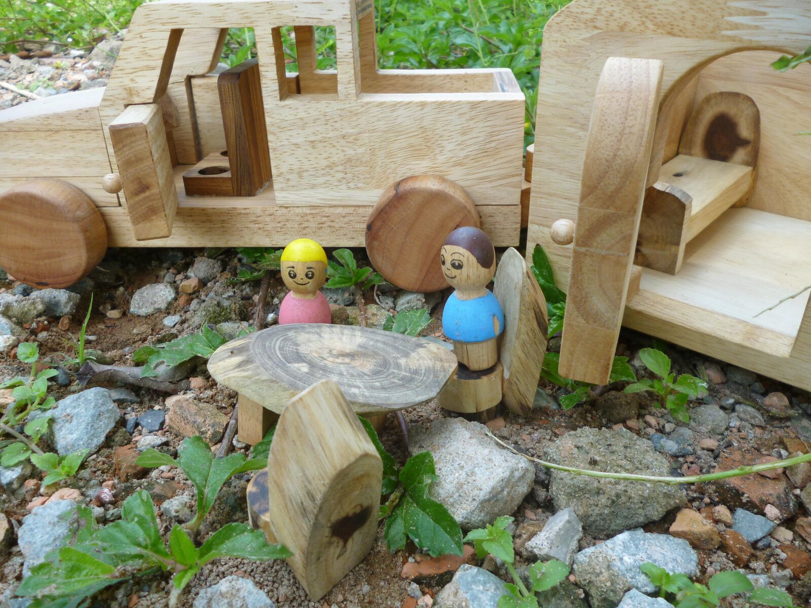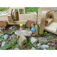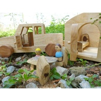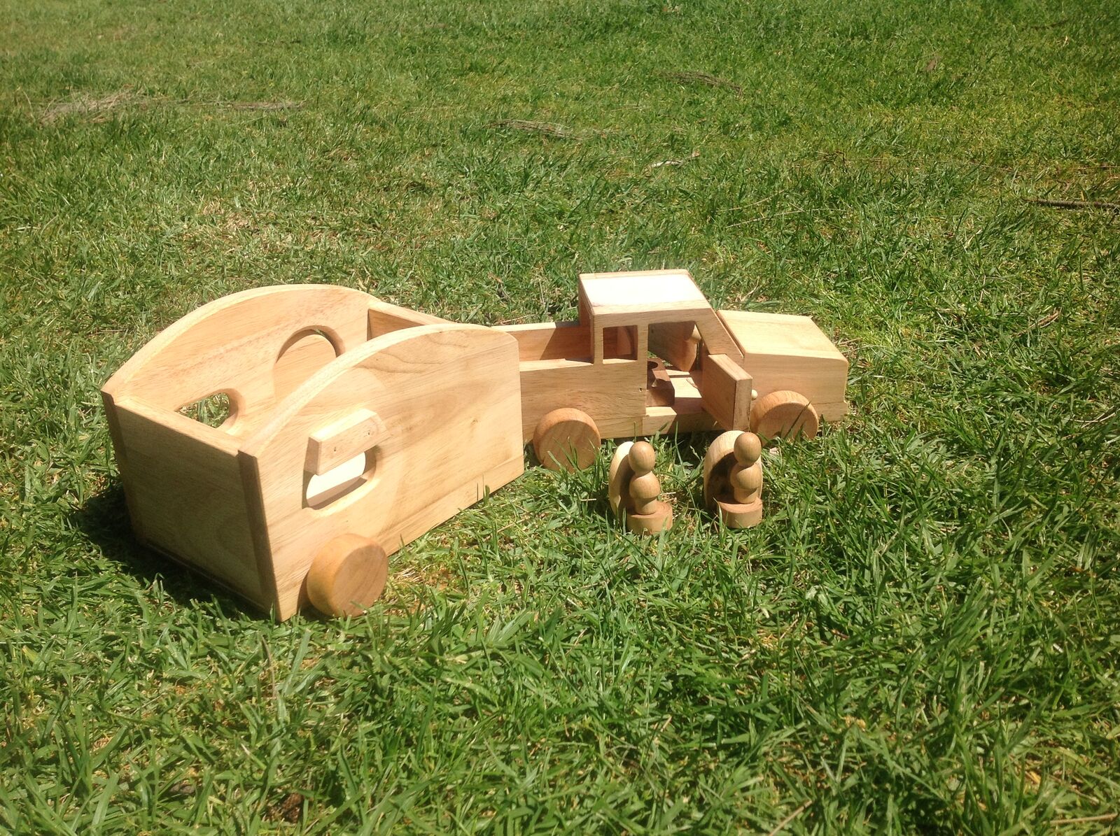$63.91Beautiful hand made caravan,with 2 wooden dolls and furniture ( bed and table and chairs) The set include a detachable mobile home with accessories and a car with 2 dirvers.. This is a quality toy that lasts! All toys are made of plantation timber, using non-toxic, child safe materials.