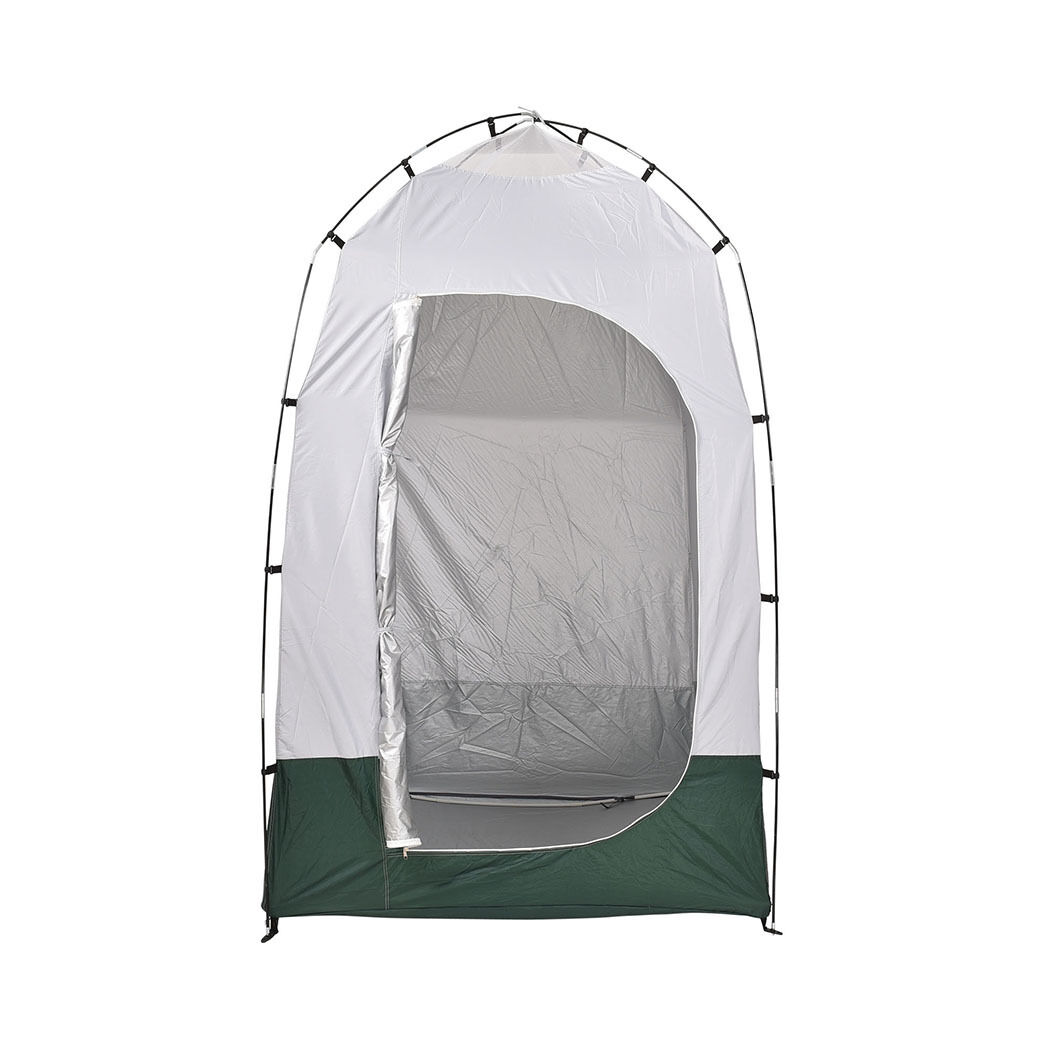 Where to shower, toilet or change clothes in a camping trip? Mountview Camping Shower Tent is your perfect solution. Adopt 210T sliver coated polyester gives your premium privacy, UV protection and waterproof. Sturdy poles with pegs and ropes ensures strong structure withstands breezy wind. Featuring hanging hook and storage bag, convenient for you to shower or change clothes. In addition, easy to convert shower room to toilet. Comes with a carry bag ideal for camping, beach events, fishing.