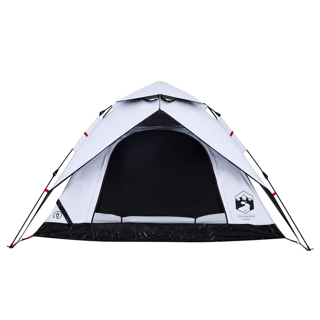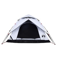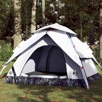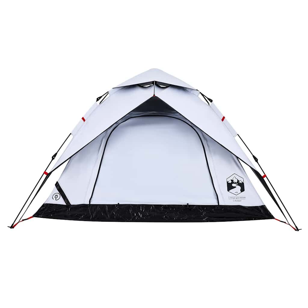 This family tent with a modern look protects you from the unpleasant weather and provides a comfortable place for anywhere adventures. All-round waterproof design: This camping tent, made from polyester with a PU coating, is waterproof and wind resistant. The taped seams effectively prevent rainwater infiltration, while the heavy-duty ground sheet helps maintain a dry and comfortable interior.White blackout fabric: The specially designed tent fabric blocks out 99% daylight, ensuring a cooler and more comfortable sleep environment. Say goodbye to early morning sunlight disturbances and enjoy a restful night's sleep.Quick-release system: Set up the tent effortlessly with the quick-release system! Lay the tent down, extend the pre-assembled poles until they lock into place, and you're all set!Detachable rainfly: The detachable rainfly can be attached to the tent's top for weather protection and privacy.Good ventilation & mosquito protection: The mesh walls not only offer excellent ventilation but also effectively keep insects at bay, ensuring a comfortable and bug-free experience for users.Convenient electrical cord access: The E-port allows you to easily connect an extension cord from an external power source to your tent. Warning:Keep all flame and heat sources away from this product fabric.