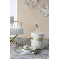 $210.55A round side table, stool or foot rest “ introducing the inspired resort side table. Adorned with discs of real sea shells that shimmer when they catch the light, this is a furniture piece that will instantly brighten and transform a space. Invest in a pair as bedside tables, use it as a stool for your desk, or as a stand-alone decor piece to rest a plant on, or even coffee table books