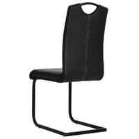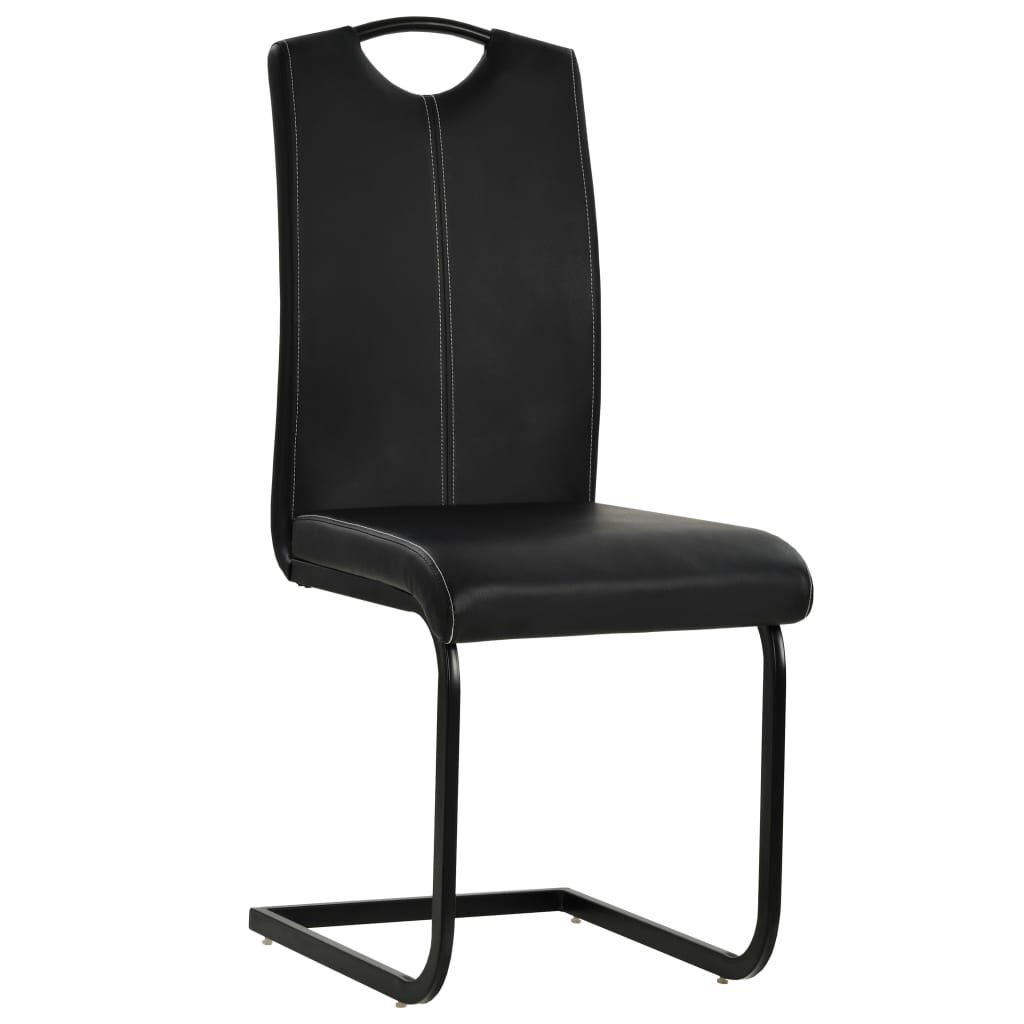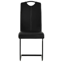 Our cantilever dining chair set has a sleek, streamlined look and will suit any modern kitchen or dining room decor. Upholstered in foam-padded faux leather, the chairs are comfortable and will give your interior a luxurious look and feel. The sturdy steel frames make the chairs stable and durable. The chair set is easy to assemble. Delivery includes 6 dining chairs.