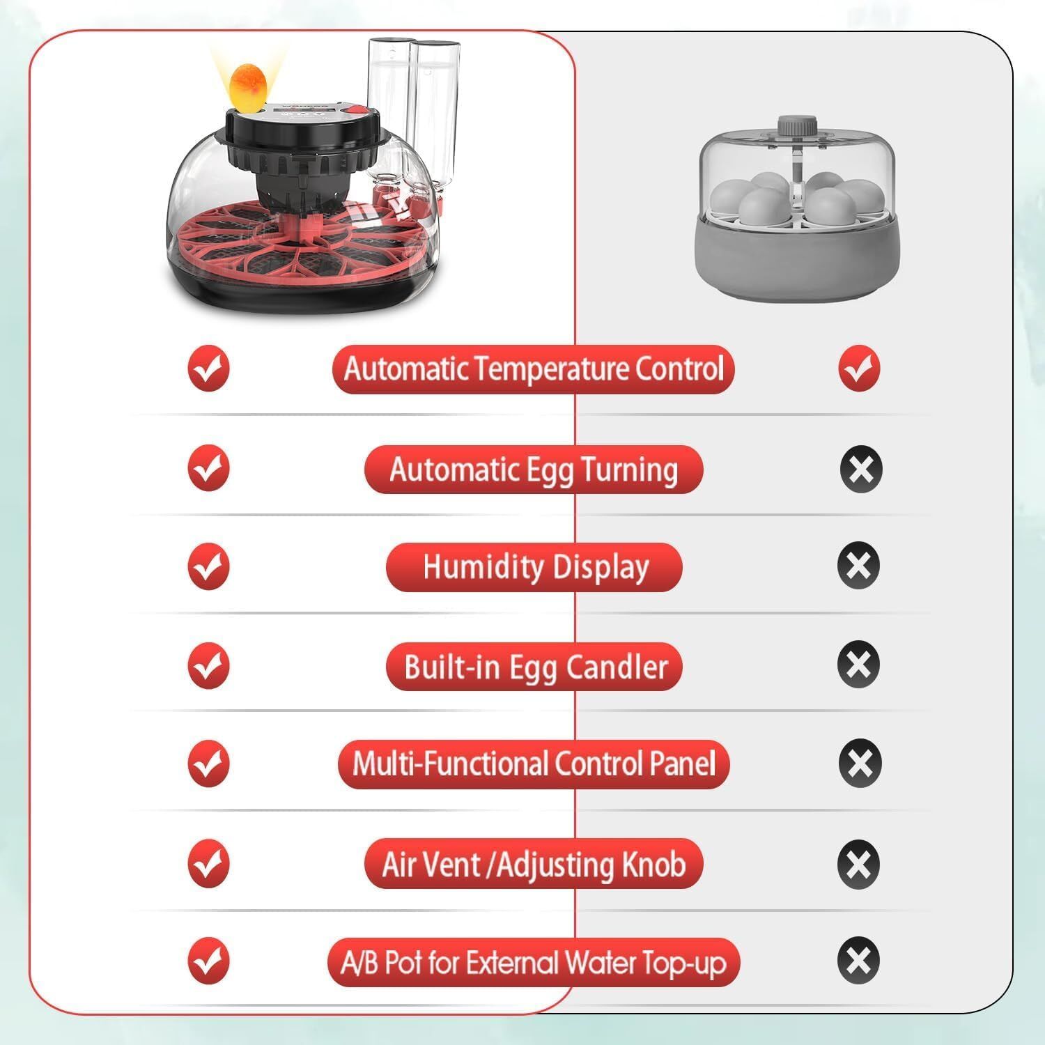 CARLA HOME 12 Egg Incubator with Automatic Turning, LED Display, Humidity & Temperature Control, Auto Water System & Built-in Egg Candler for Chicken, Duck, Quail, Goose