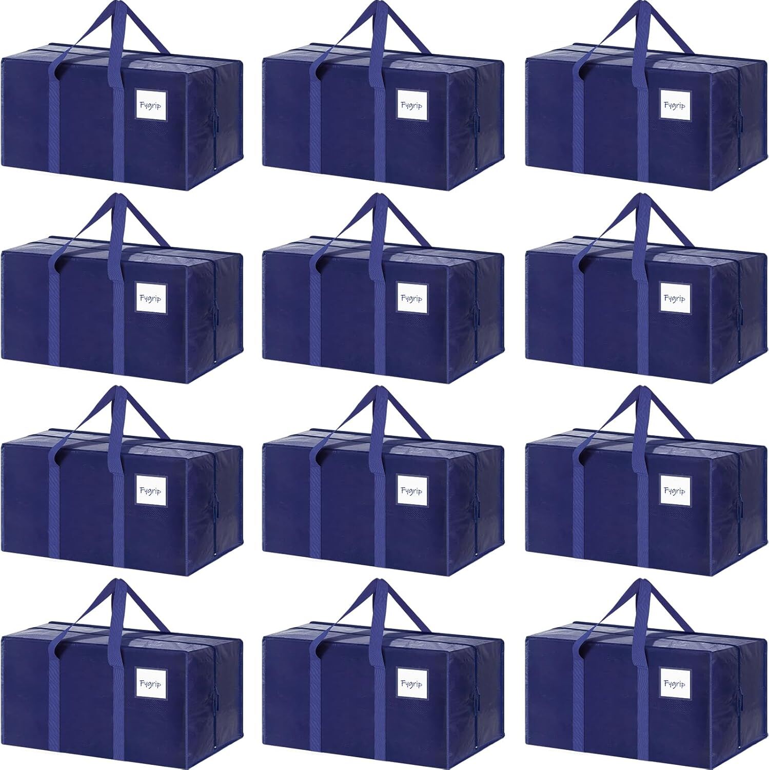CARLA HOME 12-Pack Large Moving Storage Bags with Zippers & Handles with 95 Liters Capacity for Space Saving, Travel, Camping & Organization (Blue)