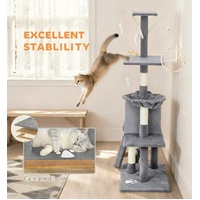 CARLA HOME 134cm Cat Tree for Indoor Cats with Hammock, Plush Perch & Sisal Scratching Posts for Kittens & Adult Cats (Light Grey)