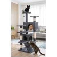 CARLA HOME 134cm Cat Tree Tower for Indoor Cats with Plush Perches, Dual Condos, Natural Sisal Scratching Posts & Ramp for Kittens & Adult Cats (Dark Grey)