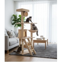 CARLA HOME 141cm Cat Tree Tower for Indoor Cats with Plush Perch, Ladder, Sisal Scratching Posts, Hammock & Condo for Kittens & Adult Cats (Beige)