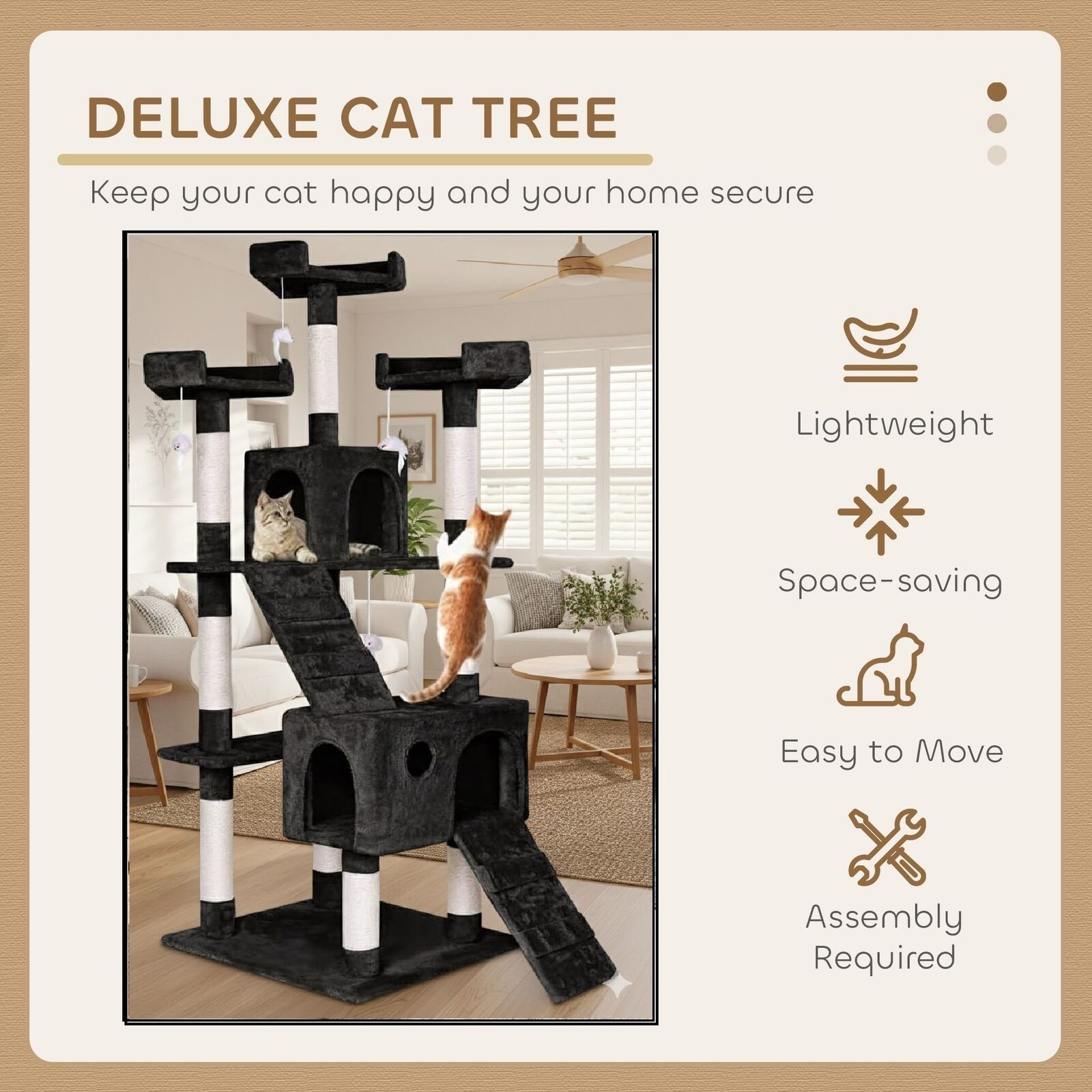 CARLA HOME 180cm Cat Tree Tower for Indoor Cats with Dual Condos, Plush Perches, Sisal Scratching Posts & Ramps for Kittens & Adult Cats (Black)