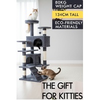 CARLA HOME 180cm Cat Tree Tower for Indoor Cats with Plush Perches, Dual Condos, Natural Sisal Scratching Posts & Ramp for Kittens & Adult Cats (Dark Grey)