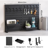 CARLA HOME 2 Pack Desk Pegboard Organizer Kit with Hooks, Tray & Mount Ideal for Office, Gaming Setup & Home Workspace Organization (Black)