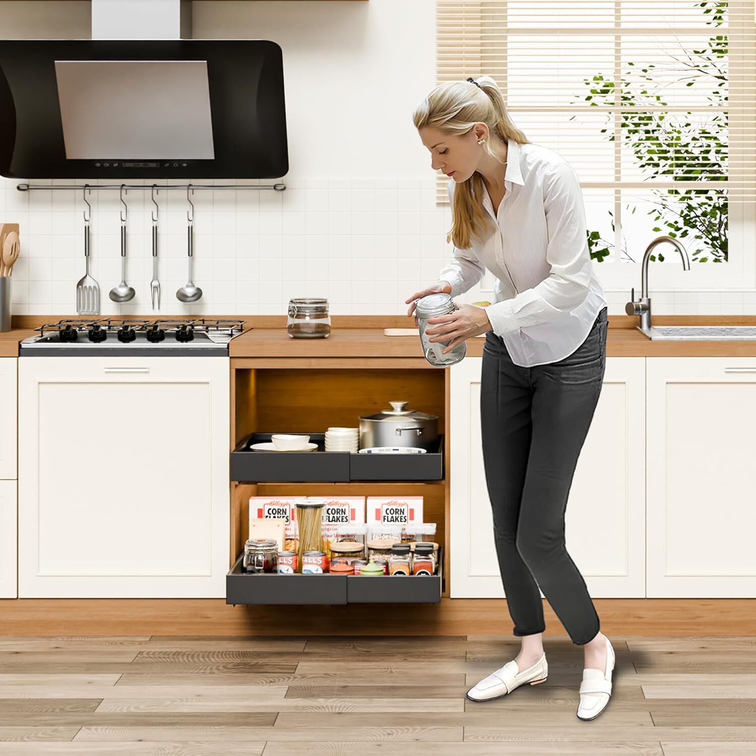 CARLA HOME 2 Pack Pull Out Cabinet Organizer Expandable for Cabinets with Adjustable Slide Out Shelves and Easy Installation (Black)
