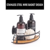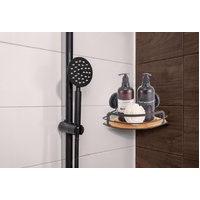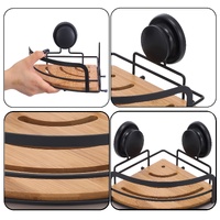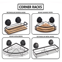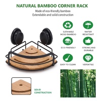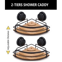 CARLA HOME 2 Pack Round Bamboo Corner Shower Caddy Shelf Basket Rack with Premium Vacuum Suction Cup No-Drilling for Bathroom and Kitchen