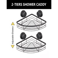 CARLA HOME 2 Pack Round Corner Shower Caddy Shelf Basket Rack with Premium Vacuum Suction Cup No-Drilling for Bathroom and Kitchen