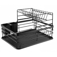 CARLA HOME 2-Tier Dish Drying Rack for Kitchen Counter with Removable Drip Tray, Utensil Holder and Cutlery Organizer (Black)