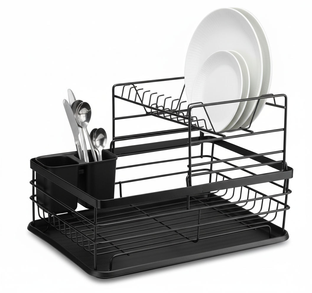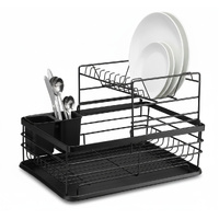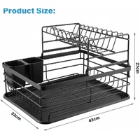 CARLA HOME 2-Tier Dish Drying Rack for Kitchen Counter with Removable Drip Tray, Utensil Holder and Cutlery Organizer (Black)