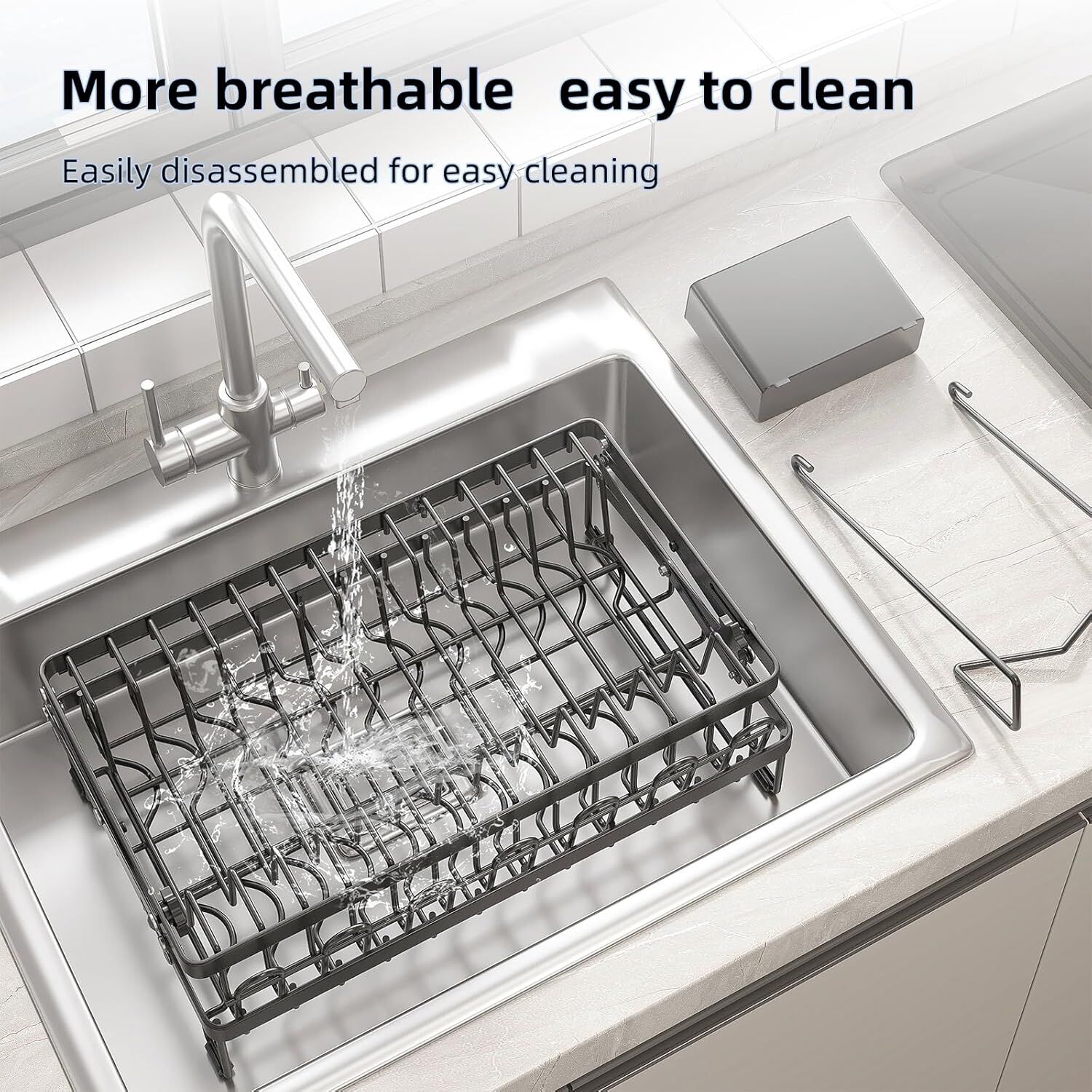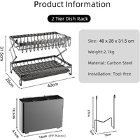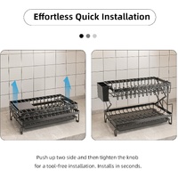 CARLA HOME 2-Tier Dish Drying Rack with Drainage Tray, Utensil Holder, Cup Hooks & Cutting Board Rack for Kitchen (Black)