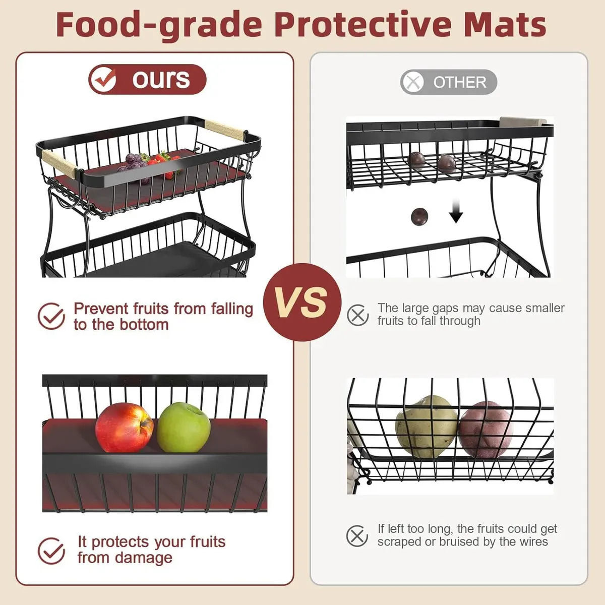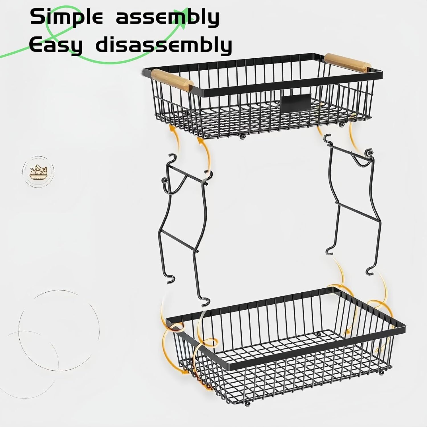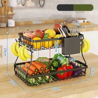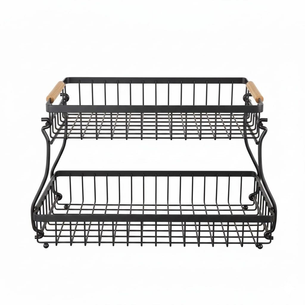 CARLA HOME 2-Tier Fruit Basket Metal Storage Bowl Kitchen Counter Organizer with Handles for Fruits, Vegetables, Snacks & Bread