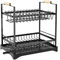 CARLA HOME 2-Tier Large Dish Drying Rack with Drainboard, Utensil Holder, Glass Hooks & Cutlery Storage (Black)