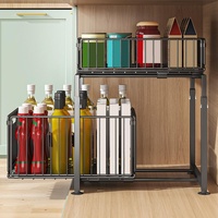 • HEIGHT ADJUSTABLE FOR CABINET SPACE: Designed with adjustable height levels, this under sink organizer adapts to different cabinet heights and tall bottles. You can customize the spacing to maximize under cabinet storage, making it ideal for cleaning supplies, toiletries, and various kitchen or bathroom items without wasting vertical space.