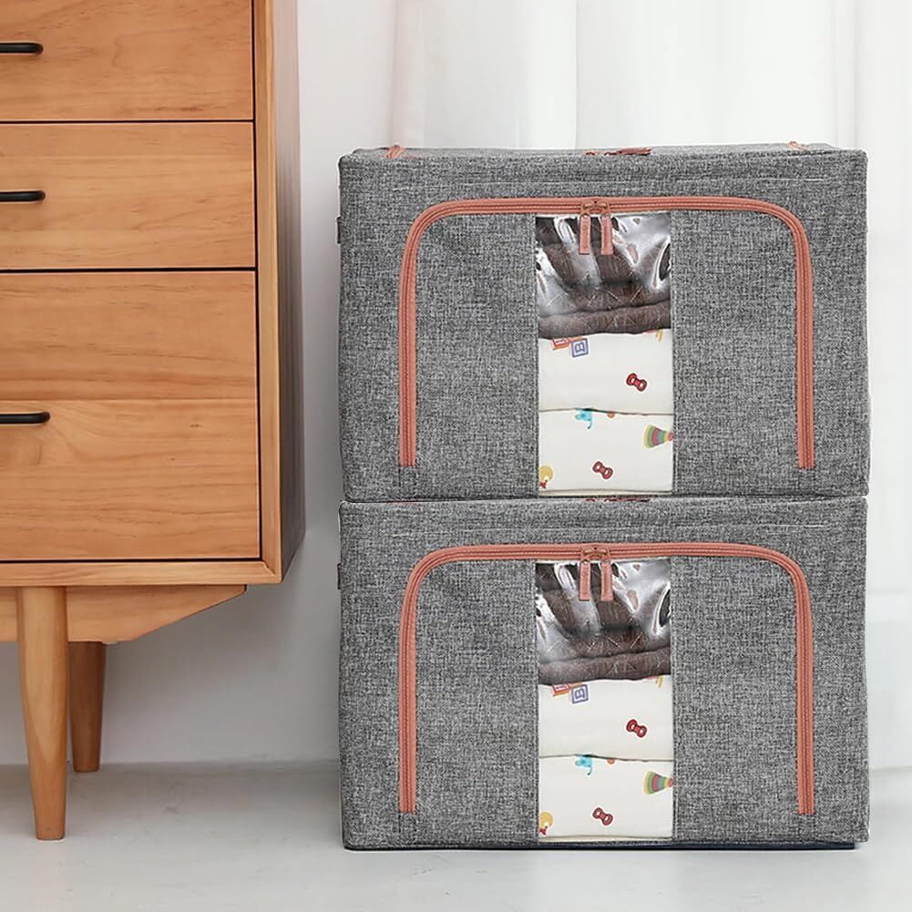 CARLA HOME 3 pack Large Clothes Storage Bins with Lids for Clothing, Bedding, Blankets, Toys (66L capacity - Grey)