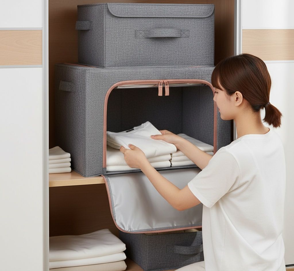 • STACKABLE & FOLDABLE DESIGN: Built with a sturdy stainless steel frame and solid base for safe stacking without collapsing. When not in use, the storage bins fold flat in seconds to save space — perfect for small apartments, dorms and compact closets.
