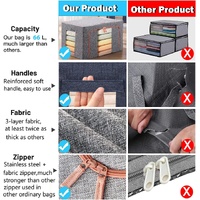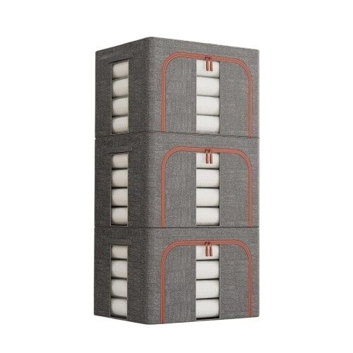 • PREMIUM DURABLE FABRIC: Made from thick, multi?layer fabric with a reinforced steel frame, these 66L clothes storage bins are stronger and more durable than standard non?woven storage bags. Moisture?resistant, dust?proof and built to maintain their shape even when fully loaded.