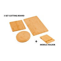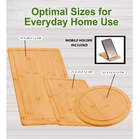 CARLA HOME 3 Pieces Bamboo Cutting Board with Juice Groove and Mobile Holder included for Home Kitchen