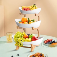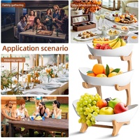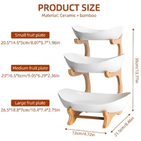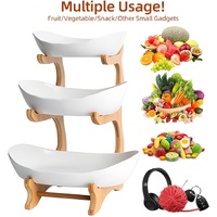 CARLA HOME 3-Tier Ceramic Fruit Bowl Basket with Bamboo Stand for Kitchen Counter, Snack Tray, Dessert Server & Vegetable Storage Rack