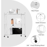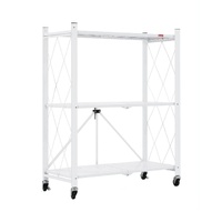 CARLA HOME 3-Tier Foldable Storage Shelf with Wheels for Kitchen, Garage, Pantry or Basement (White)
